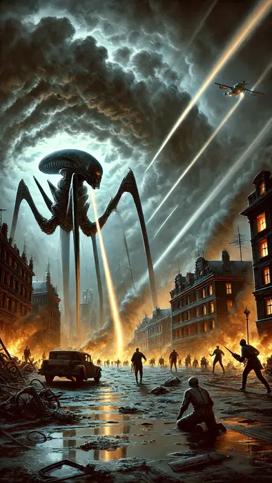 ""A Guerra dos Mundos"" é uma obra-prima de H.G. Wells que narra uma invasão alienígena do planeta Marte à Terra. O livro acompanha a luta pela sobrevivência dos seres humanos diante de máquinas colossais e tecnológicas, que espalham terror e destruição por onde passam. A narrativa, tensa e cheia de suspense, coloca em questão a fragilidade da humanidade frente a um poder extraterrestre aparentemente invencível.