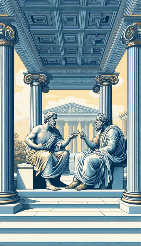 ""Fedro"" é um diálogo que trata principalmente sobre o amor e a retórica, através de uma conversa entre Sócrates e Fedro.